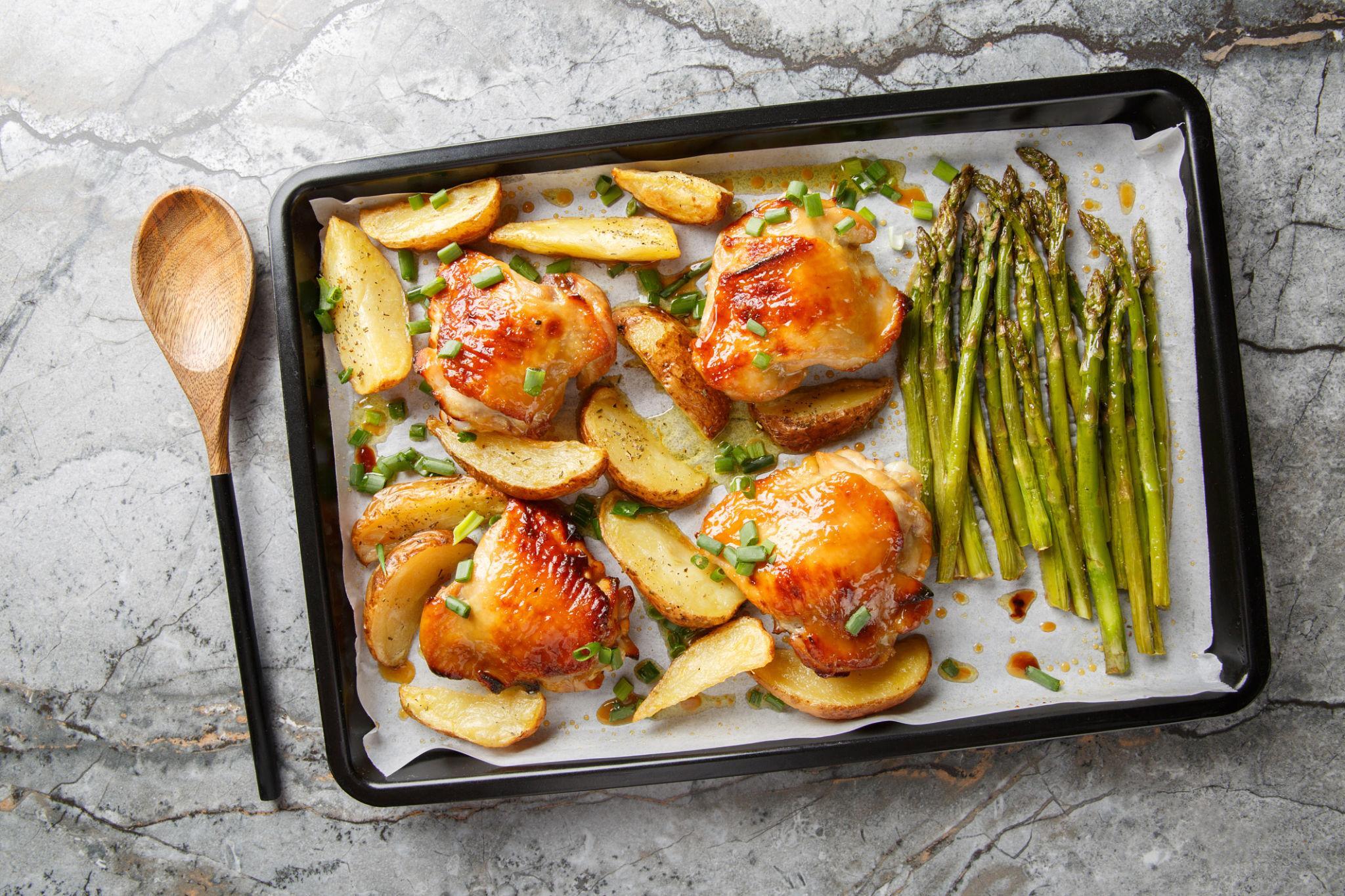 One-Pan Lemon Garlic Chicken with Asparagus & Baby Potatoes