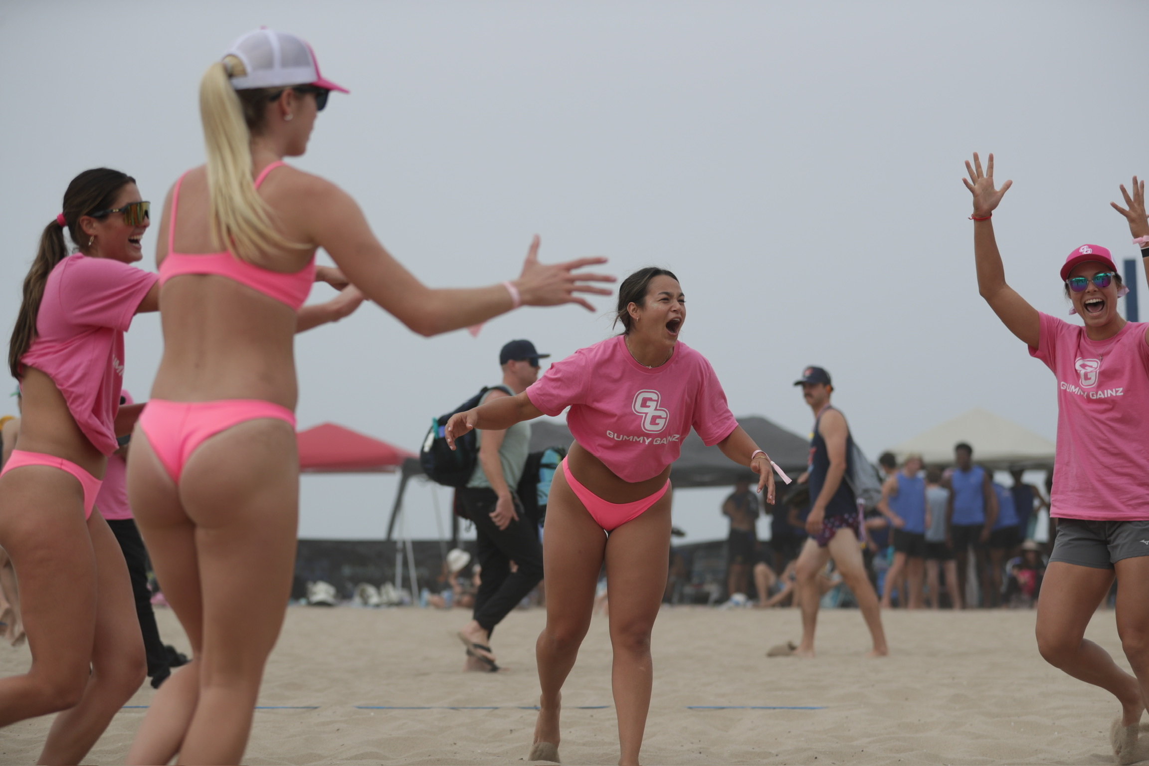 The Gummy Gainz Girls dominated the tournament. After a perfect record on Day 1, the only loss on the tournament was a nail biter in the semifinals. Team GG battled back through the contenders bracket, beating a tough team stacked with former Olympians, April Ross and Alix Klineman, to earn their spot in the finals.